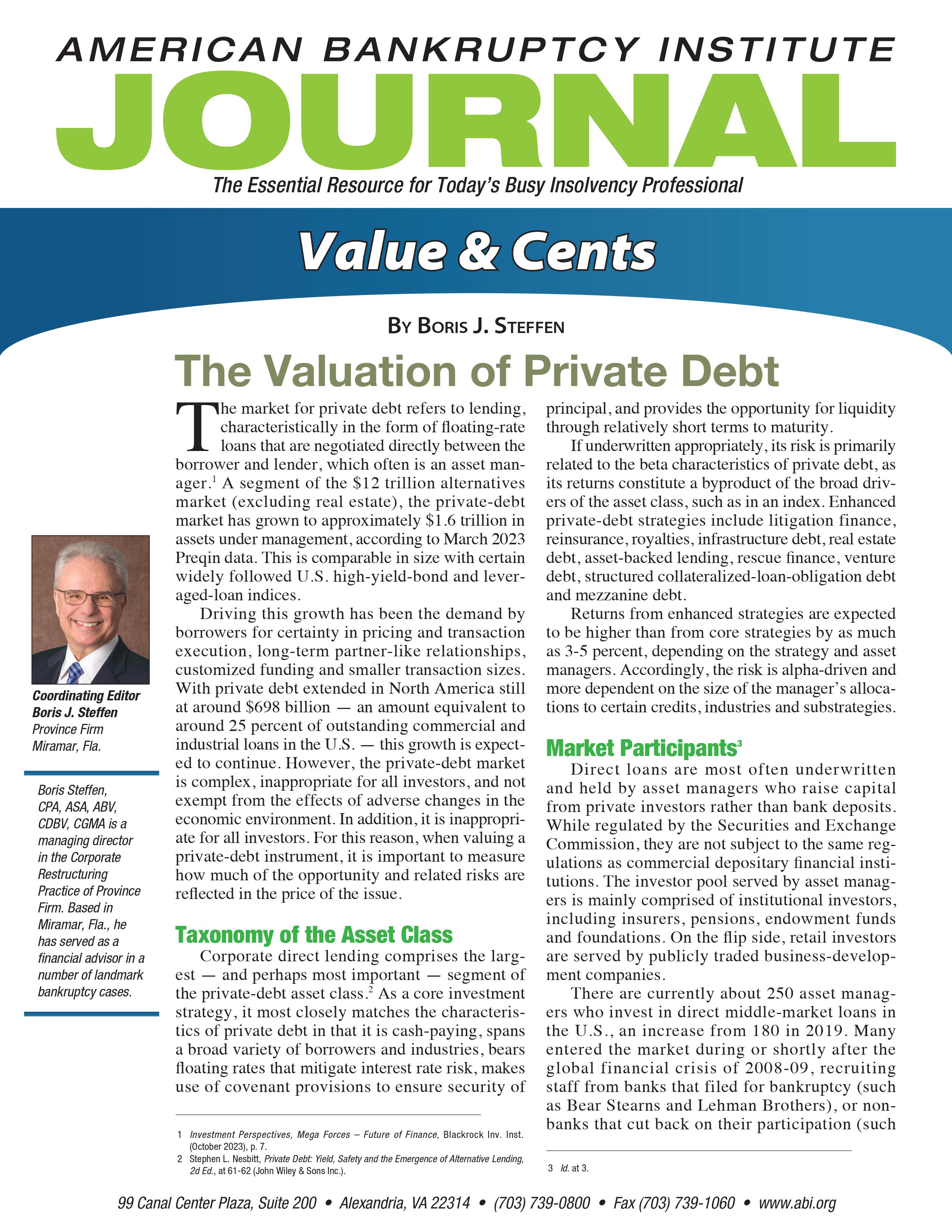 “The Valuation of Private Debt” by Boris Steffen